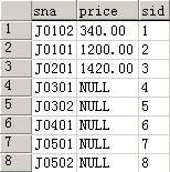 3、取sid(价目编号)、sna(名称)、price(最新价格),使用sql语句: